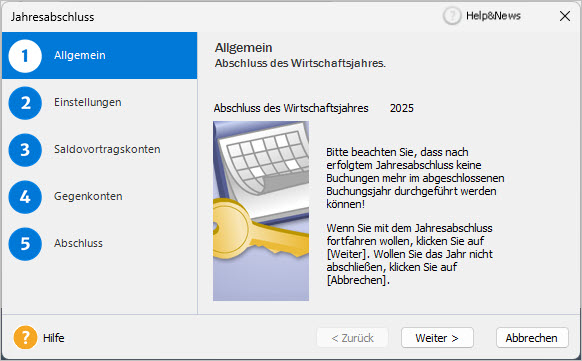 - Der Assistent 'Jahresabschluss' wird gestartet.