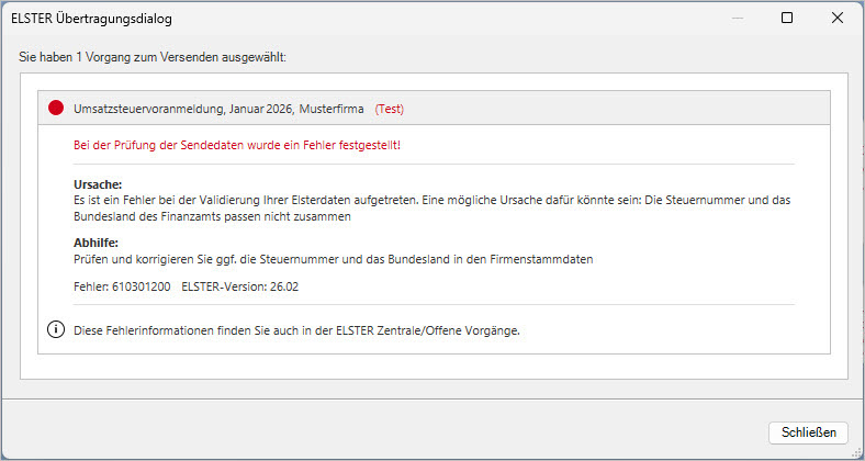 Prüfen Sie bei Fehlermeldungen die Verfügbarkeit der ELSTER-Server. Informationen zur Server-Verfügbarkeit finden auf der Webseite der Finanzverwaltung unter folgendem Link: