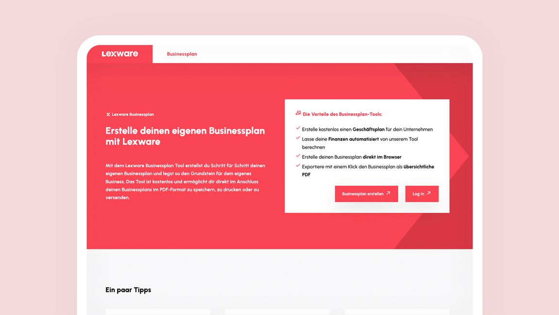 - Direkt im Browser: Du musst keine Software herunterladen, sondern kannst den Businessplan direkt online erstellen.